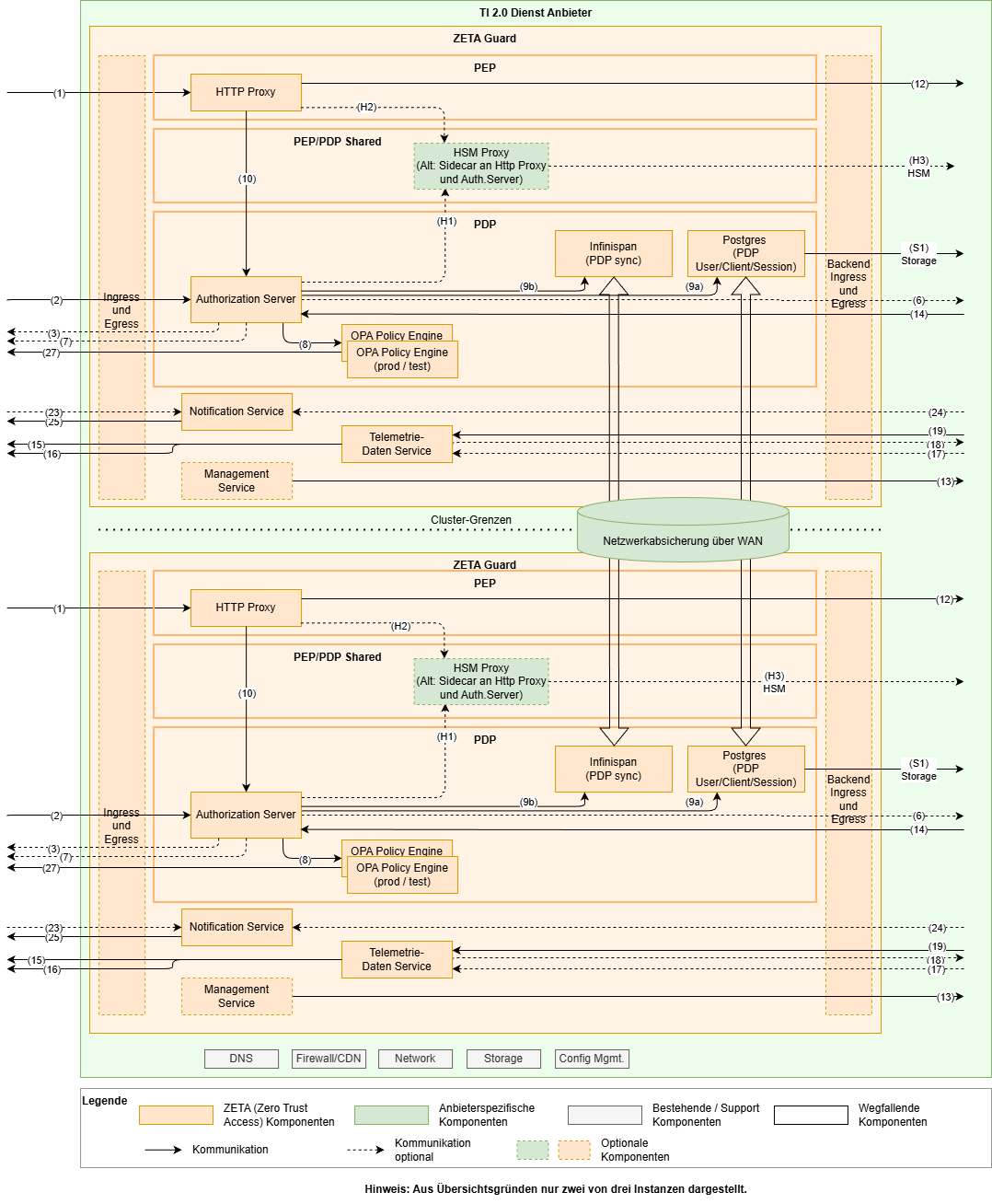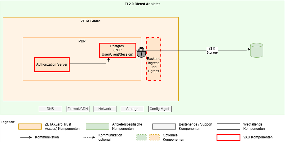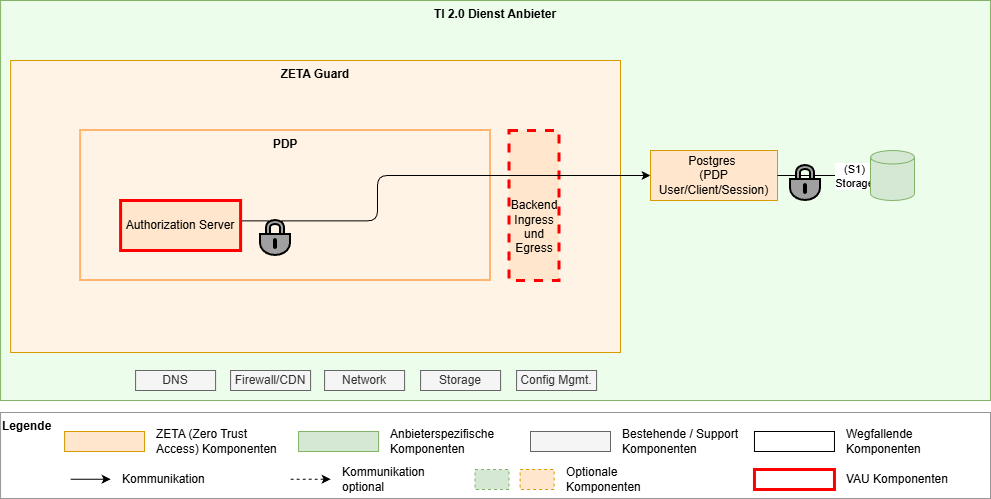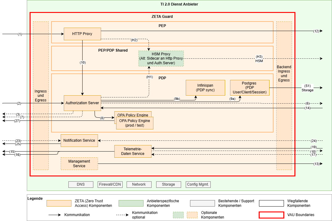 Die Vertrauensbeziehung muss dabei durch z.B. Service-Mesh oder andere Mittel zwischen den VAUs eines ZETA-Guards sichergestellt werden.